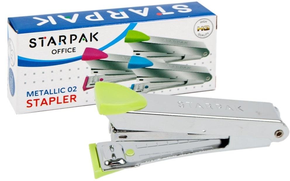Zszywacz z kolekcji Starpak dedykowanej dla szkoły i biura. Kieszonkowy zszywacz o nowoczesnym designie. Zszywa jednorazowo do 10 kartek gramatury 80 g/m2. Do zszywacza należy stosować zszywki No. 10. Magazynek mieści 100 zszywek. Głębokość zszywania - 50 mm. Zapoznaj się również z innymi...