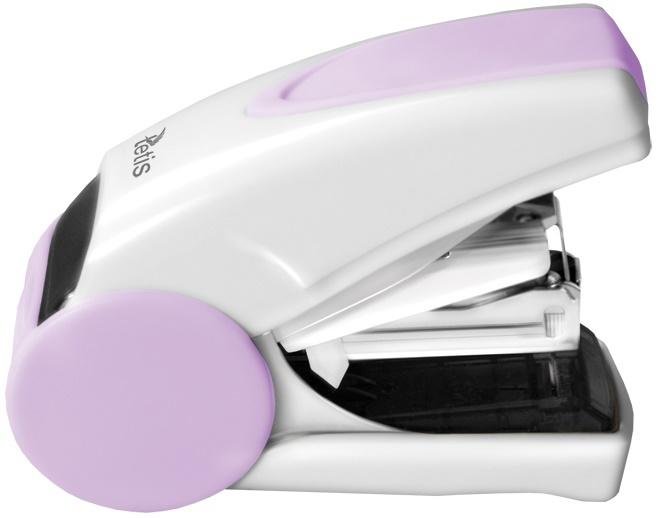Mini zszywacz w obudowie z tworzywa sztucznego, części mechaniczne metalowe. System zszywania płaskiego pozwala zaoszczędzić 30% wolnego miejsca podczas archiwizacji dokumentów. Specjalnie skonstruowana dźwignia redukuje siłę nacisku do 50%. Dostosowany do zszywek o nr 10. Zszywa do 20 kartek....