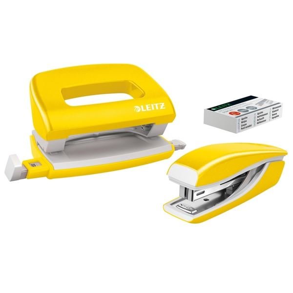 Sada mini sešívačky a děr. Leitz WOW - žlutá