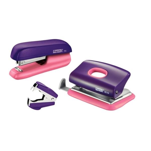 Sada mini sešívačky a děrovačky Rapid, fial./růž.
