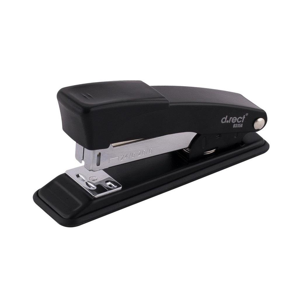 Funkcjonalny zszywacz biurowy. Pomocny w codziennej pracy, niezastąpiony w porządkowaniu i segregowaniu dokumentów. Metalowa obudowa z plastikowymi antypoślizgowymi nakładkami na ramieniu i na podstawie. Maksymalna ilość zszywanych kartek: 30 Maksymalna głębokość wsuwania kartek: 50 mm Ilość zszywek w magazynku: 70 - rozmiar zszywek: 24/6; 26/6 - długość podstawy: 11,7cm - 5 lat gwarancji - kolor czarny