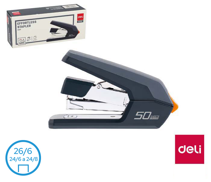 Zszywaj lekko i bez zbędnego wysiłku! Zszywacz "BEZ WYSIŁKU" DELI E0371 to idealny pomocnik dla każdego, kto potrzebuje niezawodnie i szybko łączyć kartki, bez konieczności używania nadmiernej siły.