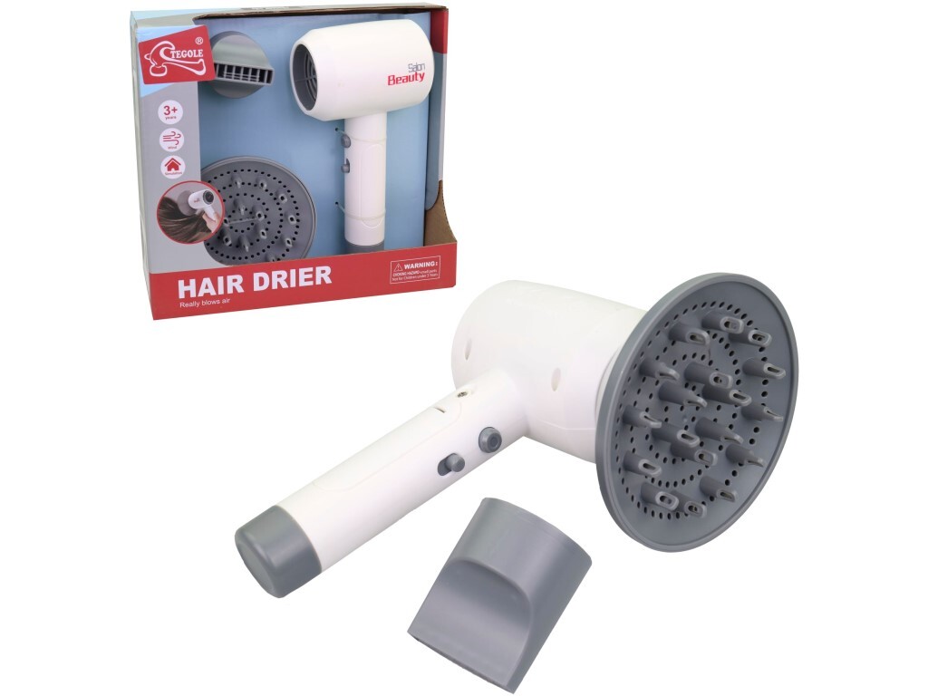 Suszarka na baterie z nasadką to odpowiednia zabawka dla wszystkich dzieci, które lubią pielęgnować włosy - swoje lub innych. Wiarygodna imitacja prawdziwej suszarki. Po włożeniu baterii suszarka dmucha powietrzem i ma dwa biegi. Wymiary produktu: 18 x 9 cm. Wymiary opakowania: 22 x 8 x 21 cm. Baterie 1 x AA 1,5 V nie są dołączone. Zalecany wiek 3+.