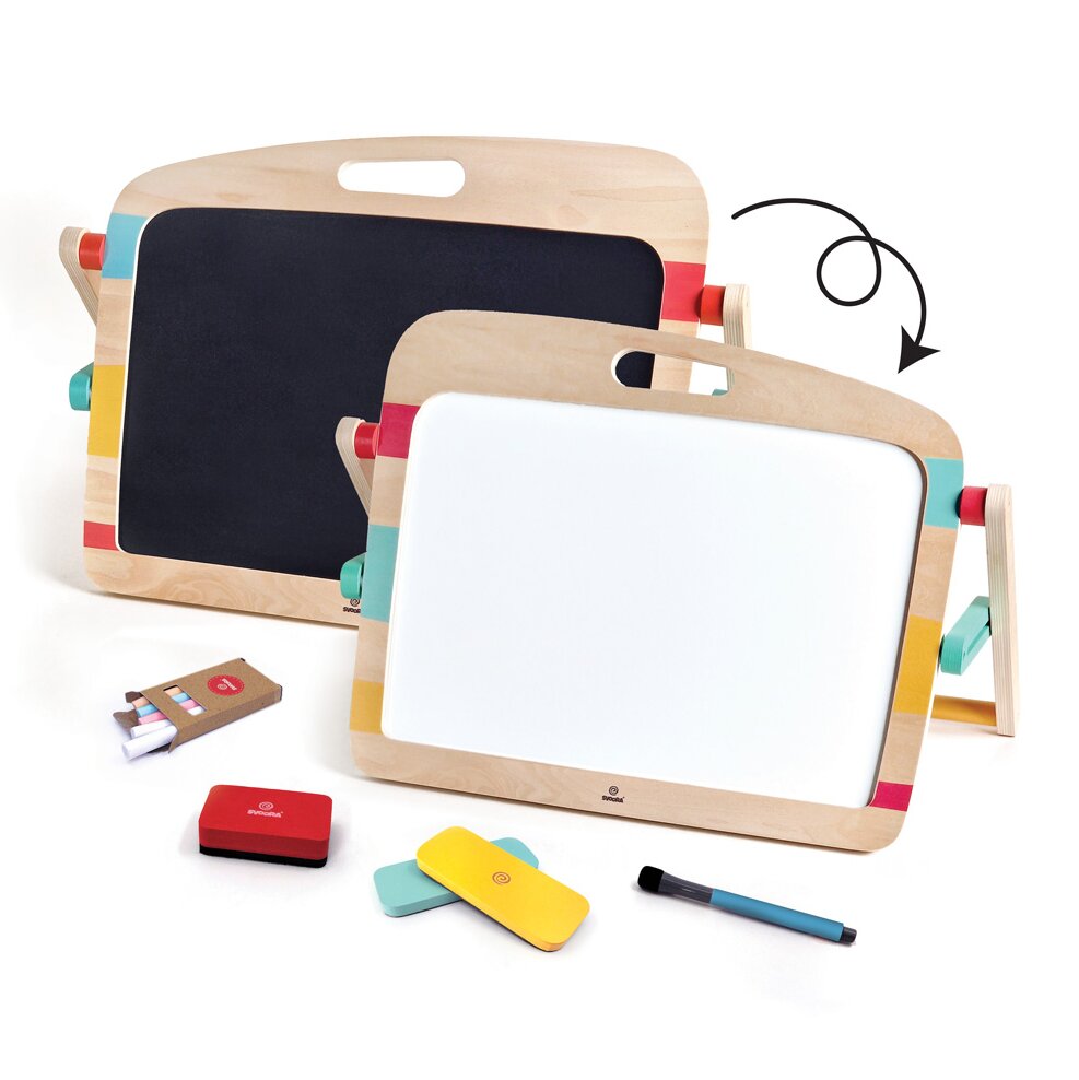 Zábavná hračka pro zábavné chvíle: Oboustranný stojan s tabulí a magnetickou tabulí! Kresli, obracej a zase kresli! Černá tabule nabízí možnost neomezeného tvoření křídami, zatímco magnetická bílá tabule je výzvou k nejlepším malbám fixem! przeczytaj całość