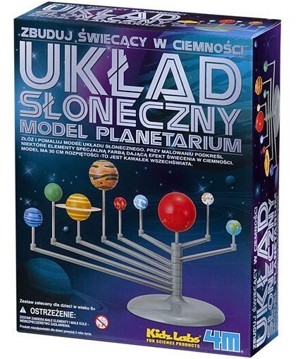 Złóż i polamuj model Układu Słonecznego. Przy malowaniu podkreśl niektóre elementy specjalną farbą dajacą efekt świecenia w ciemności. Model ma 30 cm rozpiętości. przeczytaj całość