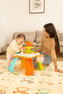 Stoliczek ze spiralą to wielofunkcyjna zabawka przeznaczona dla dzieci łaknących świata. Produkt wyposażony jest w zestaw grzechotek, kolorowych zabawek sensorycznych oraz muzyczny panel w kształcie tukana, który dziecko może złapać i bawić się nim osobno. Spiralna zjeżdżalnia i 3 grzechoczące kulki stanowią główną cześć zabawki oraz zapewnią dziecku długie godziny losowania otworu z którego wypadnie puszczona po spirali piłka. Zabawka jest odpowiednia dla dzieci w wieku powyżej 18 miesiąca życia.