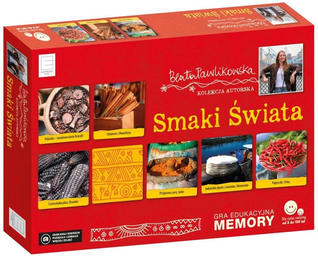 Pierwsza taka gra memory - nowy projekt i autorska kolekcja słynnej podróżniczki Beaty Pawlikowskiej.Doskonała zabawa dla całej rodziny (od 3 do 100 lat).Zagraj razem z dzieckiem w memory i znajdź 24 pary zdjęć z cyklu Smaki świata wykonanych przez Beatę Pawlikowską w dalekich krajach.Memory...