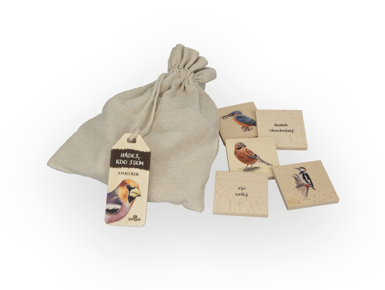 Jsem strakapoud nebo datel? Originální reálné ilustrace vám v hádání napoví.• „Hádej, kdo jsem“ vyrábí u nás v dílně české ruce z kvalitního českého certifikovaného dřeva. • Balení obsahuje 24 kostiček v rozměru 7 × 7 × 0,7 cm z masivu. • Zabaleno v přírodním látkovém pytlíku. •...