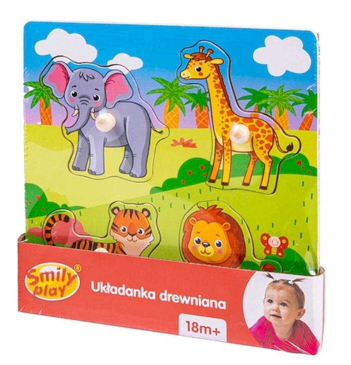 SMILY PLAY UKŁADANKA DREWNIANA SAFARI UCHWYTY SPW83614Drewniana układanka puzzle - uchwyty z wizerunkami zwierzątek z safari. Rozwija w dzieciach spostrzegawczość oraz wyobraźnię.Układanka wspiera:o Rozwój umiejętności poznawczycho Rozpoznawanie obrazków, kształtów oraz kolorówSpecyfikacjaKod...