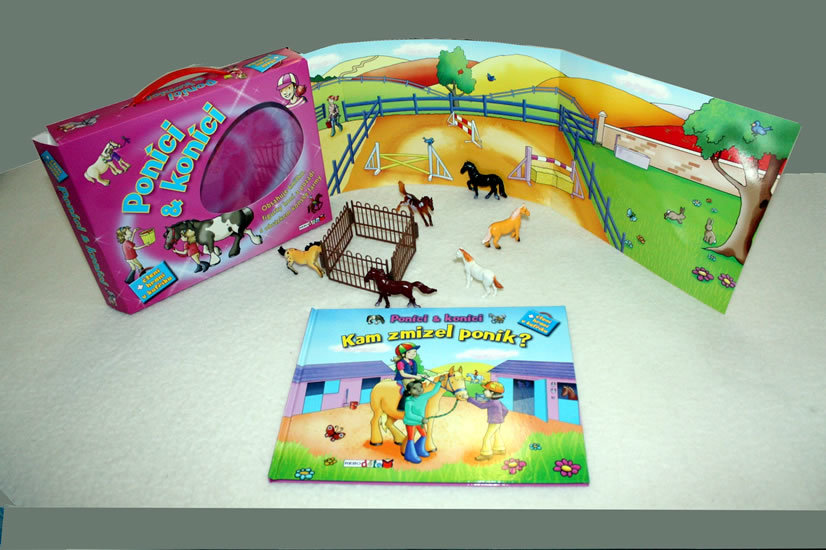 Set Poníci & koníci se skládá z knížky nazvané Kam zmizel poník?, z figurek koníků a z pozadí s obrázkem koňské farmy. Knížka obsahuje příběh o holčičce, které se stýská po oblíbeném poníkovi. Díky tomuto vyprávění se malí posluchači či čtenáři seznámí s prostředím koňské farmy. V knize je také...