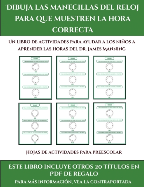 Hojas de actividades para preescolar (Dibuja las manecillas del reloj para que muestren la hora correcta) (hiszpański)