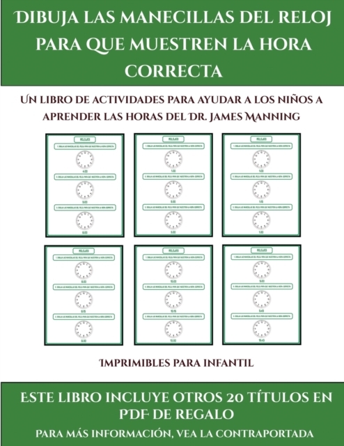 Imprimibles para infantil (Dibuja las manecillas del reloj para que muestren la hora correcta) (hiszpański)