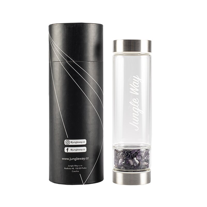 Jungle Way Designová skleněná láhev s ametystem, 480 ml