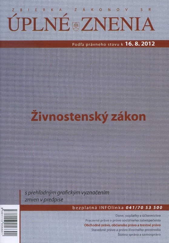 Živostenský zákon (UZZ) podľa právneho stavu k 16.8.2012 s prehľadným grafickým vyznačením zmien v predpise przeczytaj całość