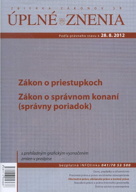 Zákon o priestupkoch a Zákon o správnom konaní (správny poriadok) - úplné znenia zákonov podľa právneho stavu k 28.8.2012 s prehľadným grafickým vyznačením zmien v predpise. przeczytaj całość