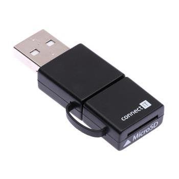 Čtečka microSD karet pro smartphony / tablety s microUSB konektorem a podporou USB OTG a pro všechna zařízení s USB a podporou mass storage device (PC Windows, Linux, Mac OS)