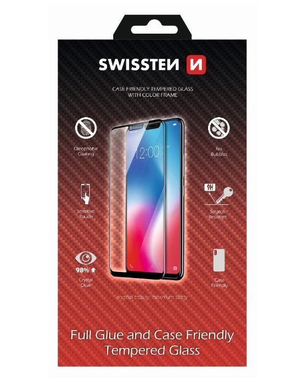 SWISSTEN Full Glue Case Friendly dla Apple iPhone SE 2020/2022 czarny