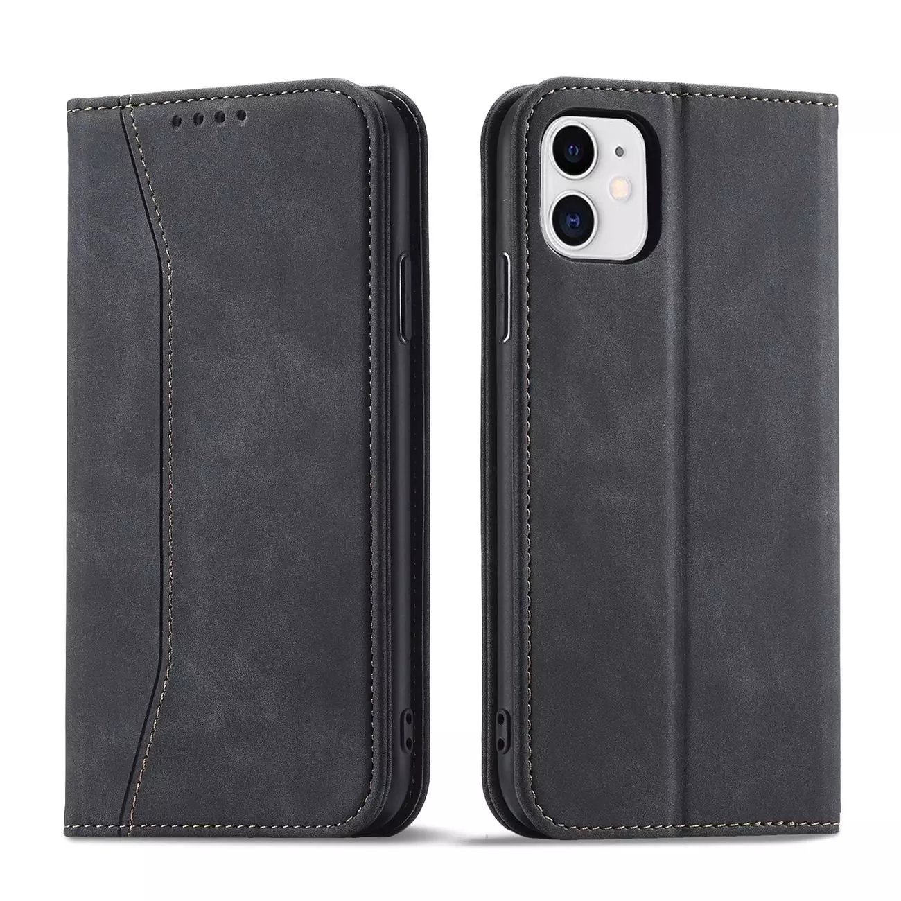 Magnet Fancy Case for iPhone 12 Pouch Card Wallet Card Stand Black