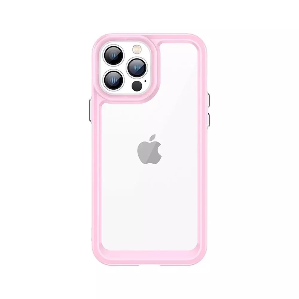 Pevný kryt Outer Space Case pro iPhone 13 Pro s gelovým rámem v růžové barvě