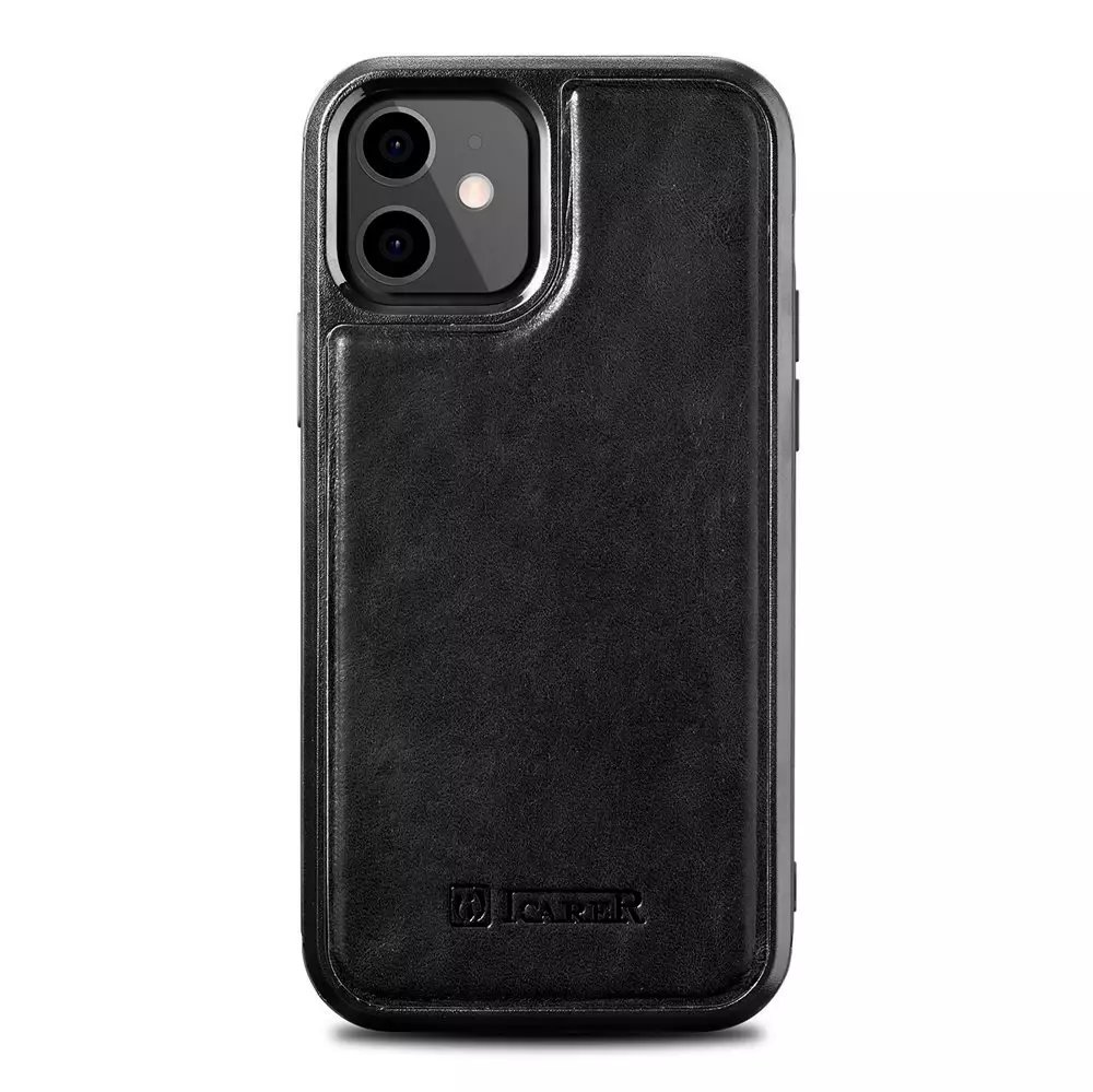 Pouzdro iCarer Leather Oil Wax potažené pravou kůží pro iPhone 12 mini černý (ALI1204-BK)
