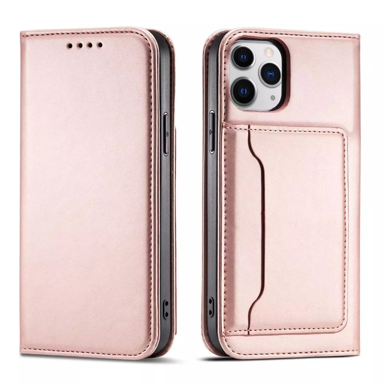 Pouzdro na magnetické karty pro iPhone 12 Pouch Card Wallet Card Stand Pink