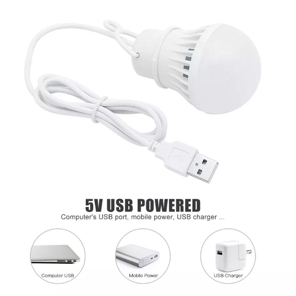 USB LED žárovka Teplé bílé světlo 350 lm 5W, kabel 1M, bílá