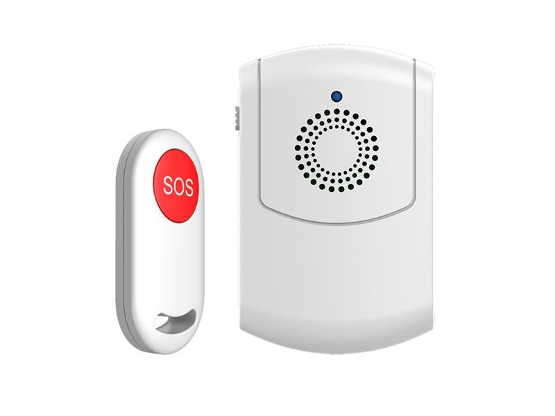 Przenośny dzwonek osobisty Geti GWP02 Przenośny dzwonek osobisty z przyciskiem SOS służy do natychmiastowego wezwania pomocy. Naciśnięcie przycisku SOS powoduje wydanie z dzwonka głośnego sygnału dźwiękowego do odległości 100 m, któremu towarzyszą wibracje oraz optyczna sygnalizacja za pomocą diod LED. Dzięki paskowi przycisk można zawiesić na szyi lub przymocować na nadgarstku. Niska waga, odporność na uderzenia oraz długa żywotność baterii gwarantują codzienne, niezawodne użytkowanie urządzenia. Funkcja Learning Code umożliwia sparowanie z dodatkowymi odbiornikami, przyciskami SOS lub dzwonkami z serii Geti GWD.
