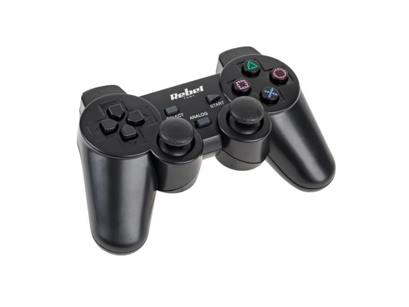 Gamepad pro PC/PS3 REBEL Gamer Dual Shock Pokud rádi trávíte volný čas hraním na konzole, ale nechcete platit za originální příslušenství? Bezdrátová podložka Rebel Gamer Dual Shock se vám bude líbit. Tento řadič má mnoho využití. Zařízení je kompatibilní s konzolami...