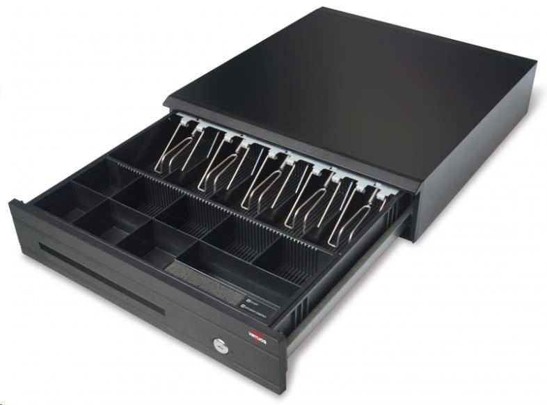 Virtuos pokladní zásuvka C425C, s kabelem 24V, kov. držáky, 9-24V, černá