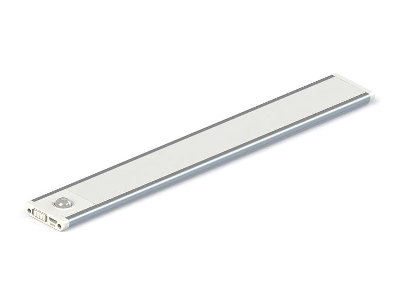 Ultra tenké, mobilní, lineární světlo s pohybovým senzorem a intergovanou baterií. Magnetické tělo. Velmi praktické, přenosné interiérové svítidlo s pohybovým senzorem a integrovanou baterií. Tělo svítidla je magnetické, svítidlo můžete umístít na jakýkoliv magnetický povrch, nebo použijte přiložené kovové držáky, do kterých svítidlo vložíte. Svítidlo můžete kdykoliv vyjmout a použít např. jako nouzové či pohotovostní osvětlení. Pokud nastavíte světlo na režim AUTO, kdykoliv senzor zaznamená pohyb, rozsvítí světlo, interval svícení 30s. Po vybití jednoduše nabijete přes microUSB kabel Tři možnosti nastavení: ON, OF AUTO.
