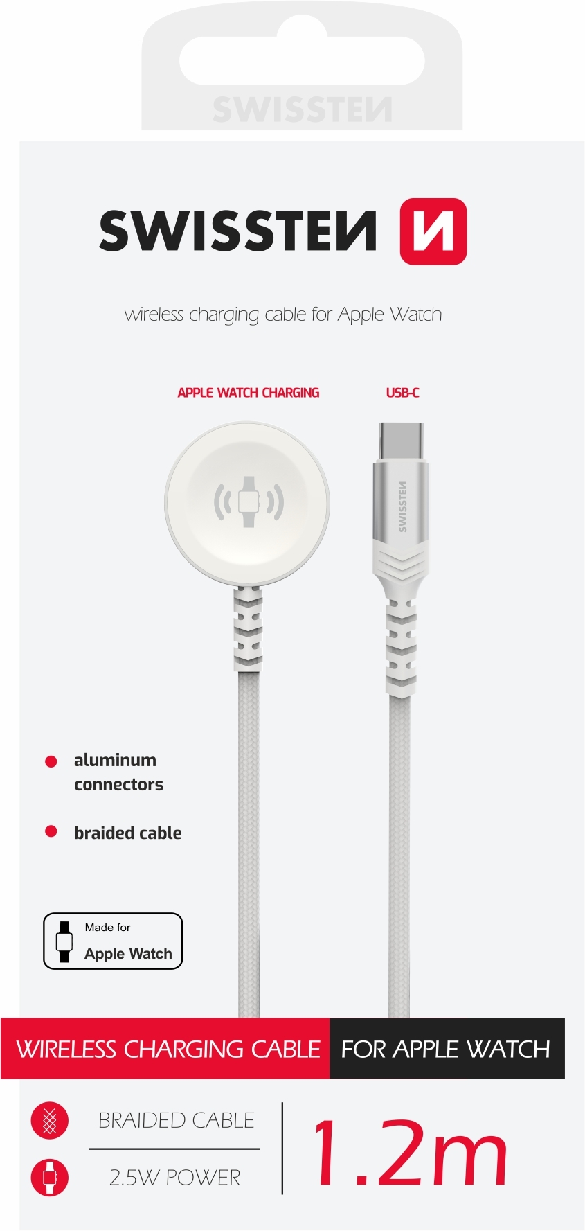 Swissten opletený magnetický kabel pro nabíjení Apple Watch, který disponuje kovovým tělem nabíječky zajisté splní veškerá vaše očekávání. Kabel vyniká příjemným pleteným povrchem.