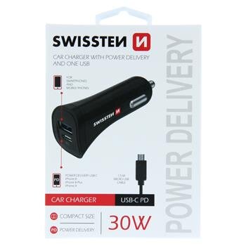 CL adaptér SWISSTEN o celkovém výkonu 30W s výstupy USB-C Power Delivery a USB 2,4A. Balení obsahuje i kabel USB/microUSB. Baleno v krabičce Swissten. Rychlé nabíjení PowerDelivery Máte Iphone 8 nebo novější? Pak máte možnost využít rychlého nabíjení powerdelivery. To umožňuje dobít iPhone 8 nebo...