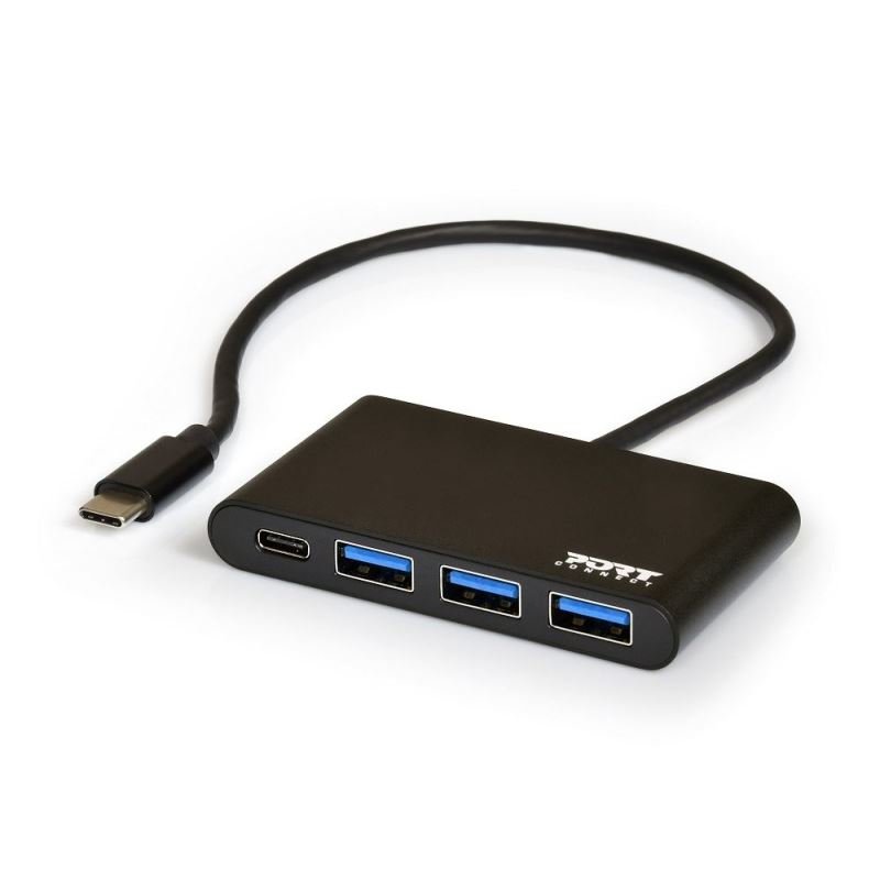 PORT CONNECT USB-C HUB, 3x USB 3.0 + 1x USB-C, černý