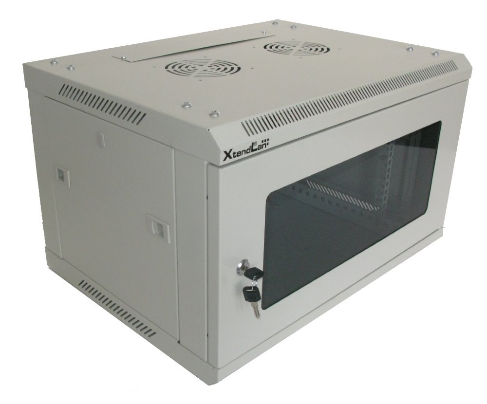 XtendLan 6U/600x450,na zeď, jednodílný, skleněné dveře, slonovina-šedý