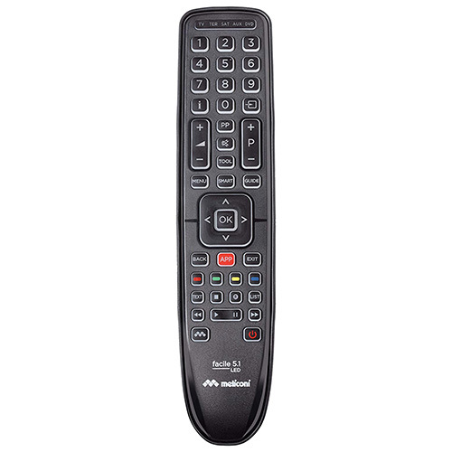 Univerzální dálkový ovladač 5v1 s gumovým tělem a podsvíceno, Univerzální dálkový ovladač 5v1 s gumovým tělem a podsvícenou klávesnicí, kompatibilní s TV, Decoder, SKY, Bluray/DVD a dalšími