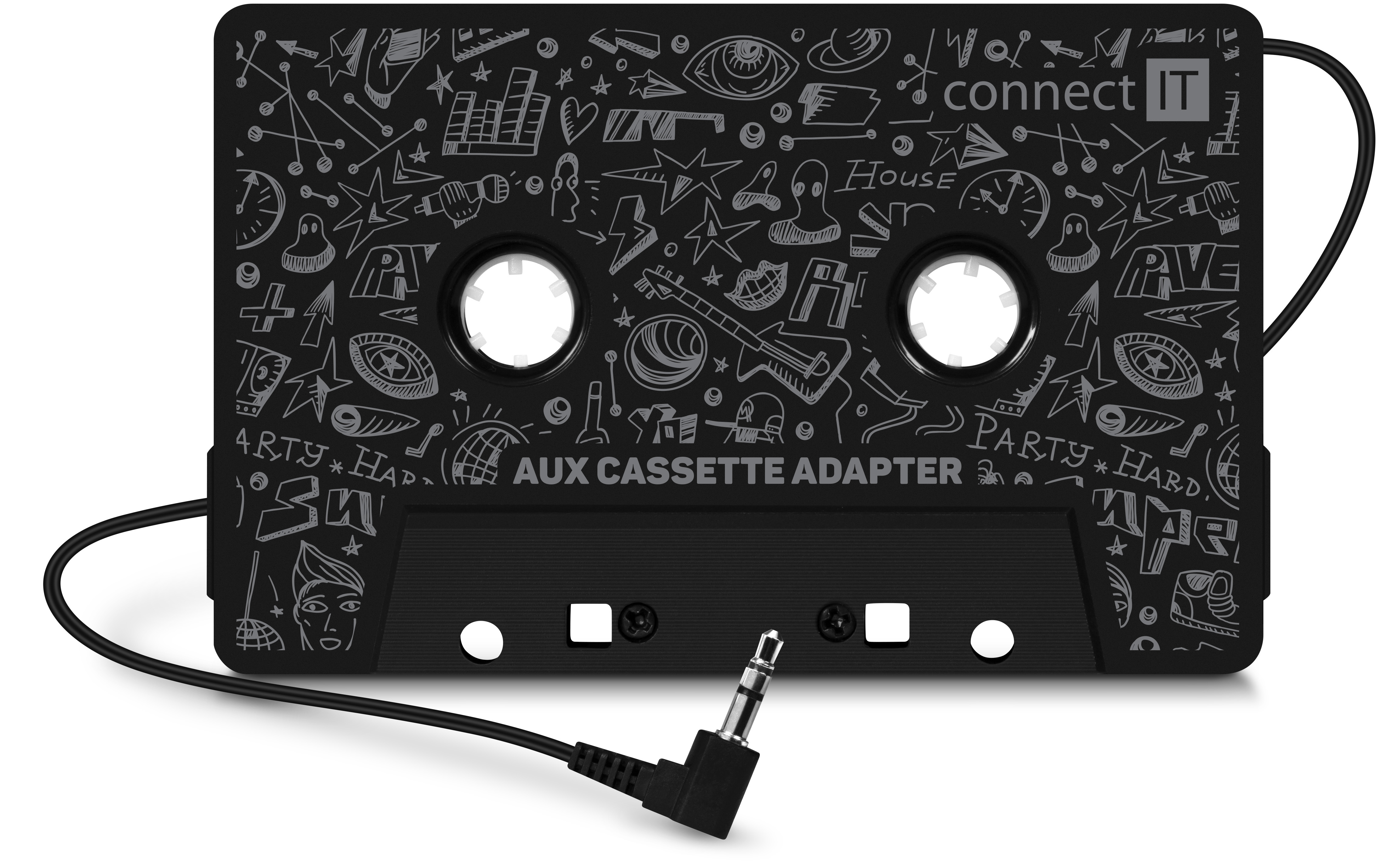 CONNECT IT AUX kazetový adaptér, 3,5 mm jack, ČERNÁ