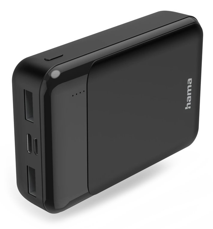 HAMA powerbanka Eco Power 10, 10000 mAh, 2 A, 2 výstupy: 2x USB-A, vstup micro USB/USB-C, černá