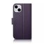 iCarer Wallet Case 2v1 pouzdro na telefon pro iPhone 14 Plus Anti-RFID kožený flipový kryt tmavě fialový