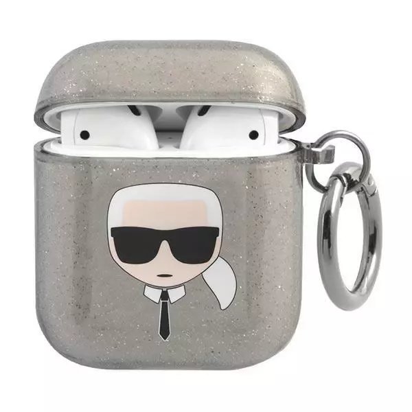 Karl Lagerfeld KLA2UKHGK kryt AirPods černý/černý Glitter Karl`s Head