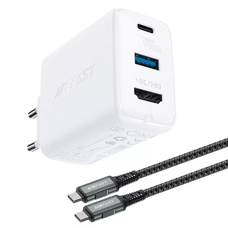 Acefast 2v1 nabíječka GaN 65W USB Type C / USB, adaptér adaptér HDMI 4K @ 60Hz (sada s kabelem) bílá (A17 bílá)