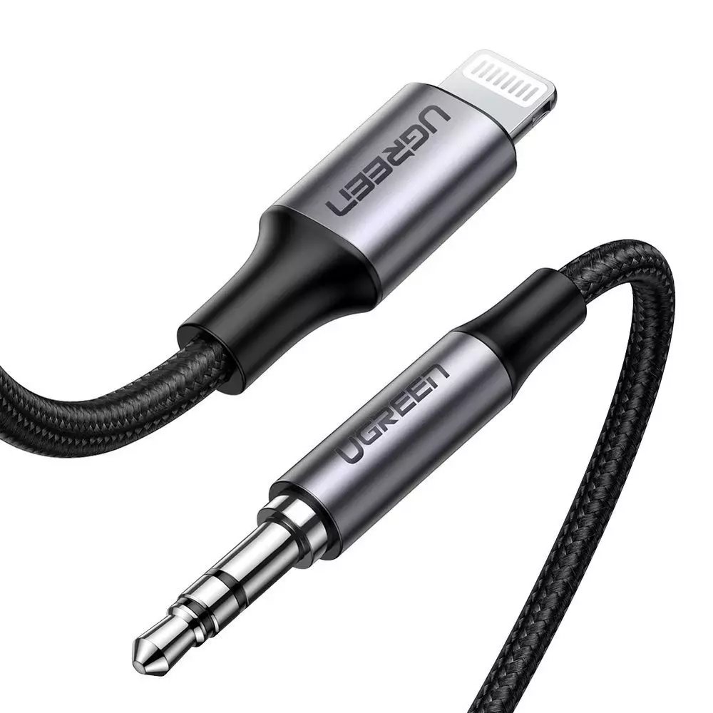 Ugreen kabel audio kabel AUX MFI Lightning - 3,5mm mini jack 1mCertifikovaný MFI audio AUX kabel s konektorem Lightning - 3,5 mm mini jack. Umožňuje připojit telefon nebo tablet s Lightning konektorem ke sluchátkům s 3,5mm mini jack portem female nebo například AUX portem na autorádiu. Díky tomu...