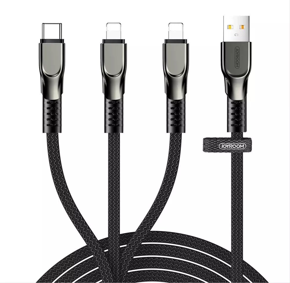 Joyroom 3w1 kabel USB - Lightning / Lightning / USB Typ C 3,5A 480 Mbps 1,3 m černý (S-1335K4)