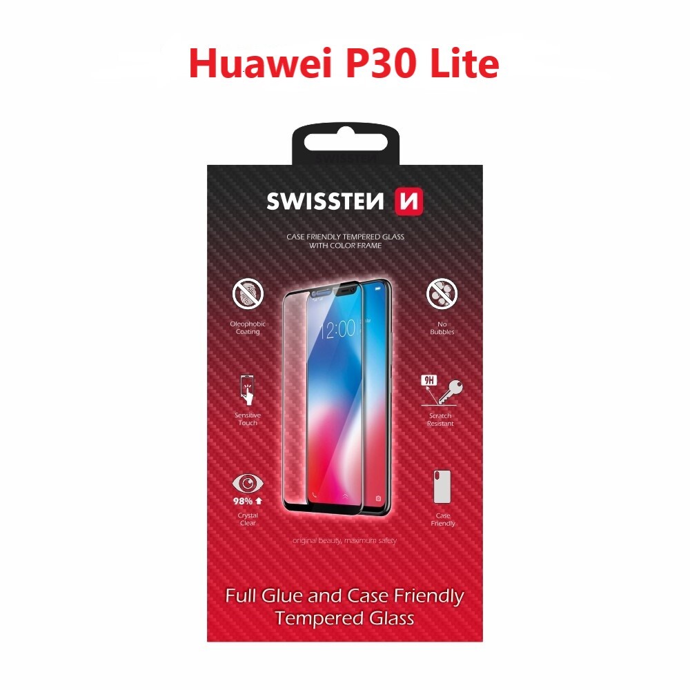 SKLO SWISSTEN FULL GLUE, COLOR FRAME, CASE FRIENDLY PRO HUAWEI P30 LITE ČERNÉ