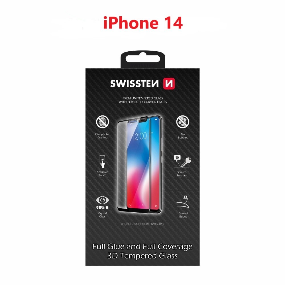 SKLO SWISSTEN ULTRA DURABLE 3D FULL GLUE GLASS PRO APPLE IPHONE 14 ČERNÉ
