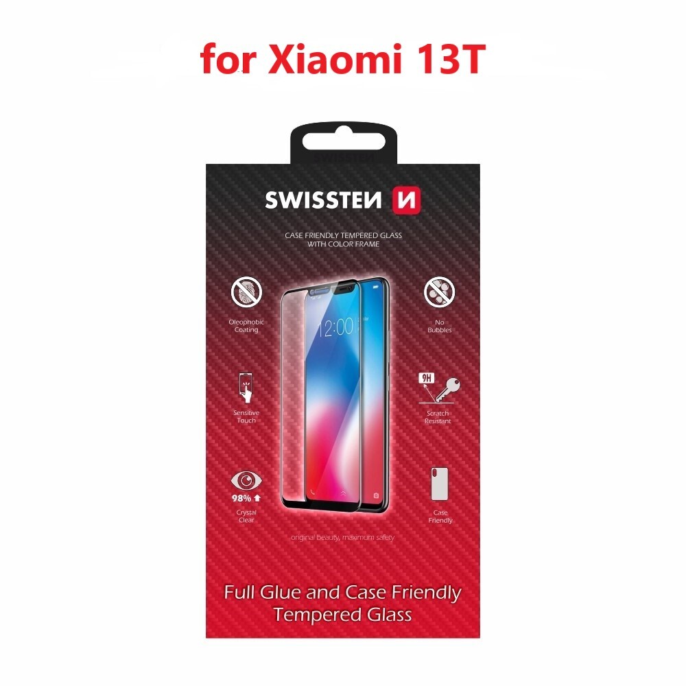 SKLO SWISSTEN FULL GLUE, COLOR FRAME, CASE FRIENDLY PRO XIAOMI 13T ČERNÉ