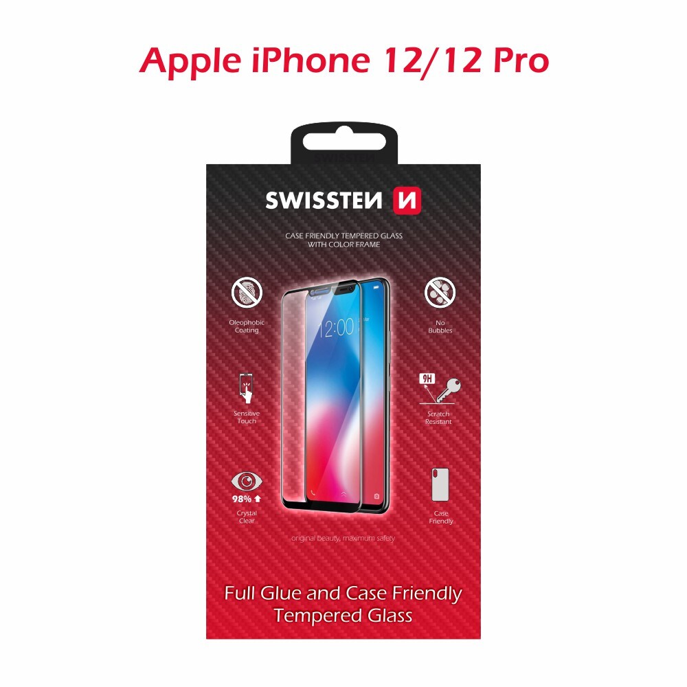SKLO SWISSTEN FULL GLUE, COLOR FRAME, CASE FRIENDLY PRO APPLE IPHONE 12/12 PRO ČERNÉ