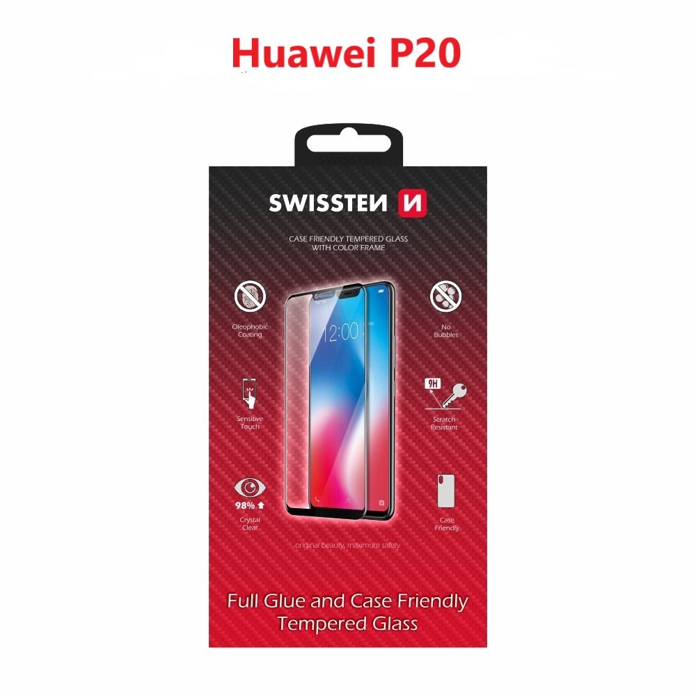 SKLO SWISSTEN FULL GLUE, COLOR FRAME, CASE FRIENDLY PRO HUAWEI P20 ČERNÉ