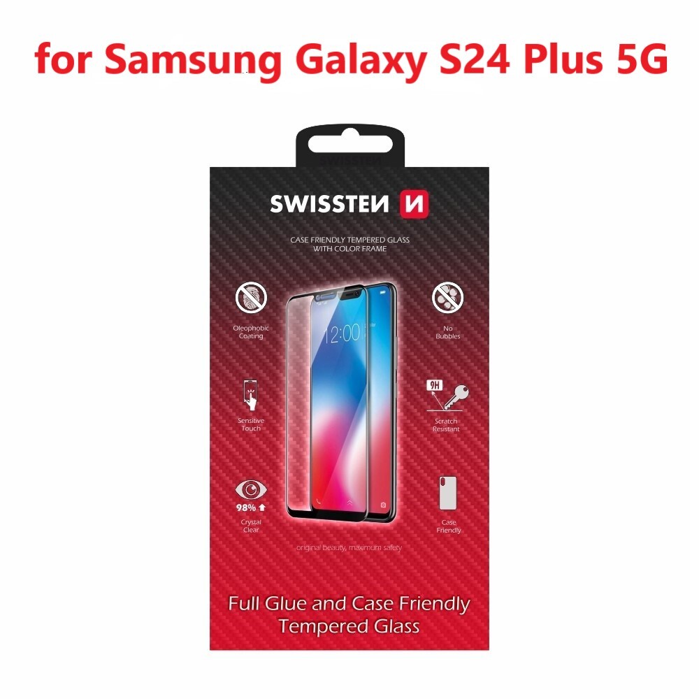 SKLO SWISSTEN FULL GLUE, COLOR FRAME, CASE FRIENDLY PRO SAMSUNG GALAXY S24 ULTRA 5G ČERNÉ
