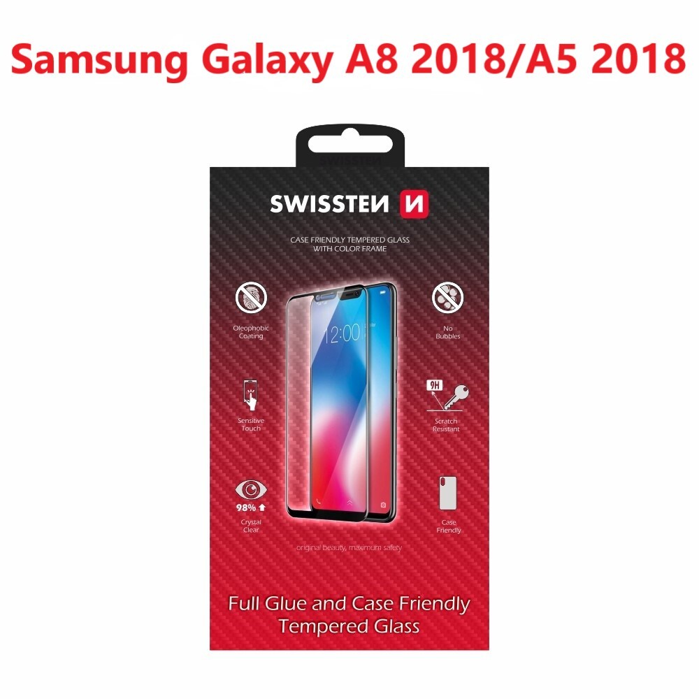 SKLO SWISSTEN FULL GLUE, COLOR FRAME, CASE FRIENDLY PRO SAMSUNG GALAXY A8 2018/A5 2018 ČERNÉ
