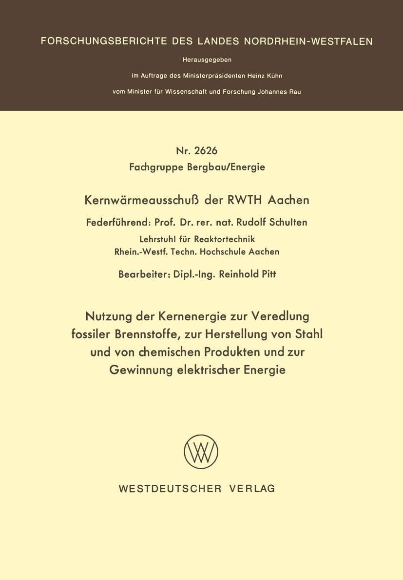 Nutzung der Kernenergie zur Veredlung fossiler Brennstoffe, zur Herstellung von Stahl und von chemischen Produkten und zur Gewin (niemiecki)